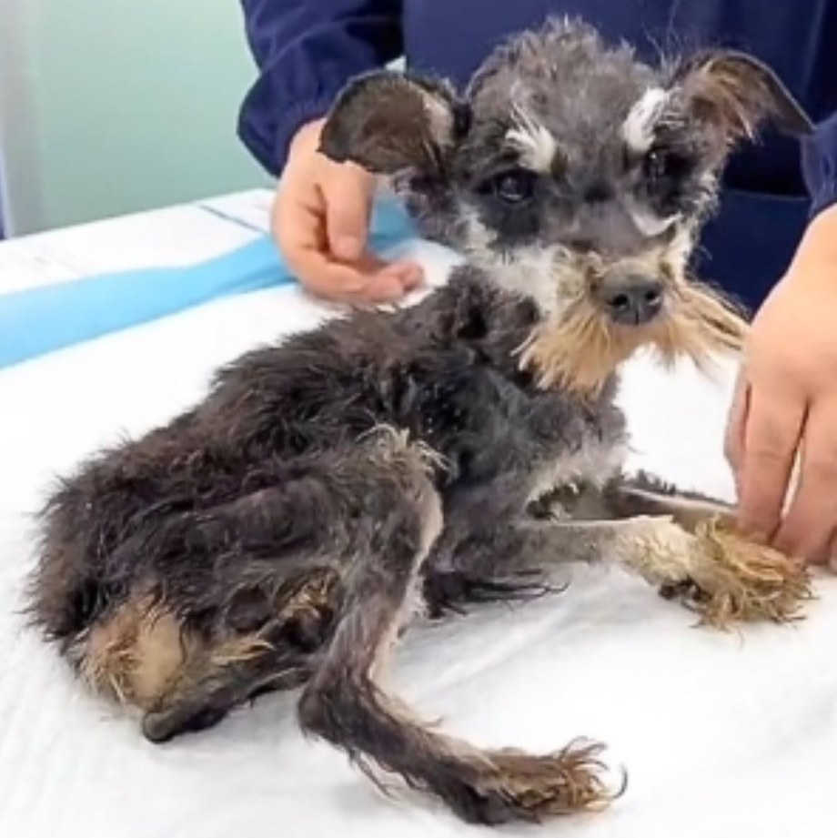 Verlo de cerca rompía el alma. Era tan pequeño, tan frágil, que cualquiera habría pensado que no lograría sobrevivir una noche más. Su cuerpo temblaba de frío y miedo, y cada movimiento parecía un esfuerzo sobrehumano. Pesaba menos de dos kilos — apenas una sombra de lo que alguna vez fue, con la piel cubierta de heridas y casi sin pelaje.