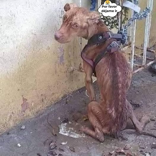 Sus ojos vacíos reflejaban más que tristeza: contaban una historia de soledad, hambre y miedo. Día tras día, aquel perrito permanecía encadenado a una pared fría, sin agua, sin comida, sin nadie que lo mirara con compasión. Su cuerpo, débil y cubierto de heridas, era el testimonio silencioso del abandono.