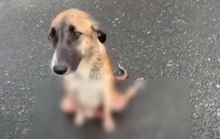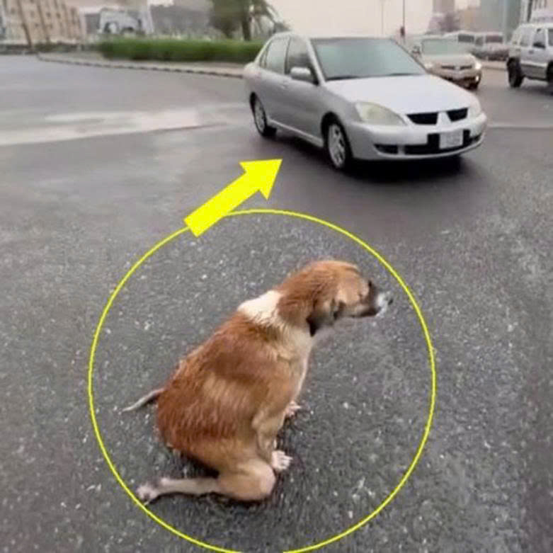 Una perra madre, empapada por la lluvia incesante, se sentaba al borde de la carretera, con los ojos suplicando en silencio ayuda a los autos que pasaban. Su vientre hinchado revelaba su necesidad de cuidar a sus cachorros, pero nadie se detenía.